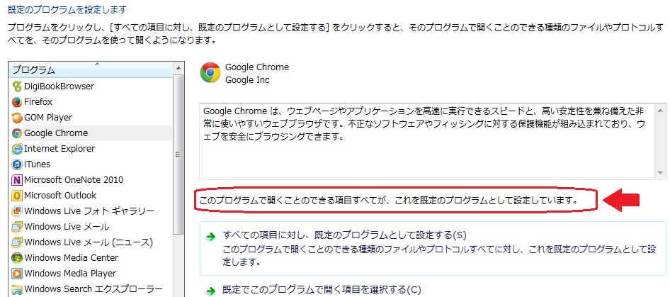 【このプログラムで開くことのできる項目すべてが、これを既定のプログラムとして設定しています】と表示されればOKです。